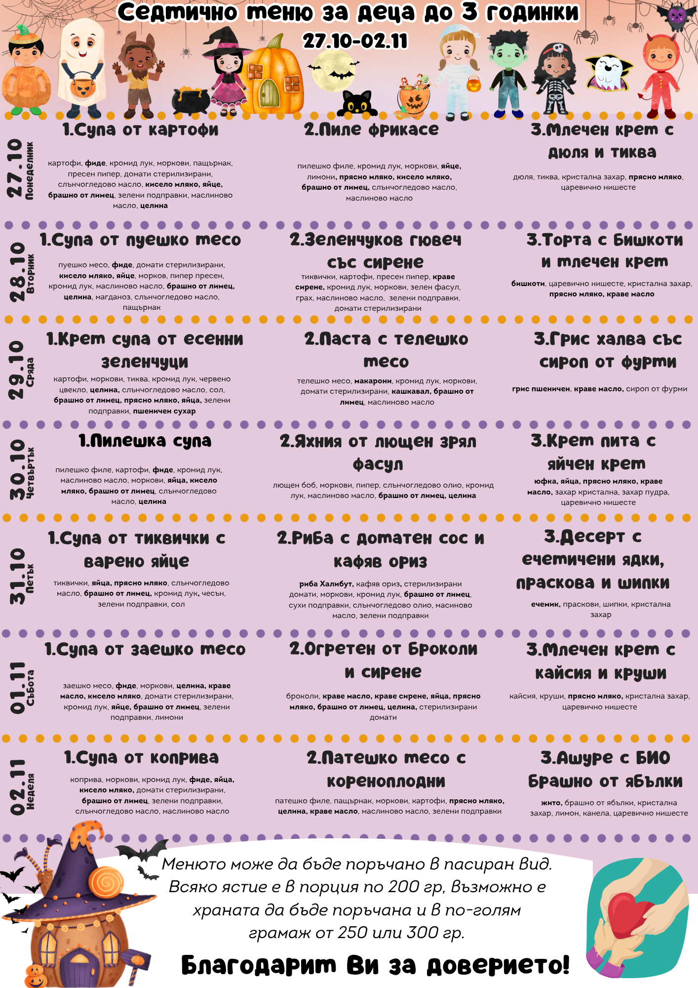 Меню на детска кухня VIP бебе, за деца над 7м.